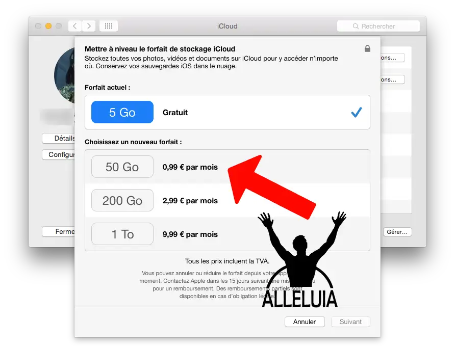 Voilà 5 gigas que la petite pomme me concède et qui vont forcément me sortir de ce mauvais pas. Franchement, je vous le demande, combien sommes-nous à refuser 5 gigas gratuits à un tel moment ? C’est là devant moi, comme une évidence. Et voilà comment j’ai créé mon compte utilisateur chez Apple / Icloud pour la première fois.